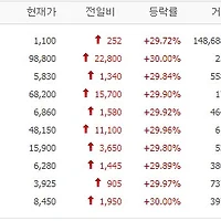 * 기타 코스닥 종목 전일대비 상승률 상위종목