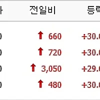 부광약품 삼양사 콤텍시스템 대한전선 한국주처롼 인디에프 세우글로벌 일양약품우 부국증권우 한성기업 하이골드2호 디와이파워 덕성 코리아오토글라스 슈넬생명과학 STX엔진 사조대림 문배철강 포스코플랜텍 KINDEX 일본레버리지(H) 노루홀딩스2우B 한솔케미칼 현대비앤지스틸 KStar 일본레버리지(H) 이스타코 유나이티드제약 일양약품 ARIRANG 차이나H 레버리지(합성 H) 하이골드12호 영풍제지 KODEX China H 레버리지(H) LG생활건강 진원생명과학 성신양회3우B 평화홀딩스 삼양사우 필룩스 유한양행 SG충남방적 코스맥스비티아이 티이씨앤코 성신양회 NAVER 우성사료 삼성중공우 토니모리 오리온 계양전기 대우 인버스 에너지화학 Core5 ETN CJ대한통운 한독 쌍용양회 대원전선우 동방 아주캐피탈 KODEX MSCI독일(합성) LIG넥스원 보해양조 덕양산업 태양금속우 형지엘리트 파미셀 서울가스 메리츠종금증권 KODEX 미국금융(합성) 디와이 유니온 등