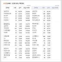 메리츠종금증권 대우건설 두산인프라코어 한진해운 삼성중공업 SK네트웍스 대우조선해양 SK증권 미래산업 현대건설 한화케미칼 삼성엔지니어링 대우증권 KODEX 200 흥하해운 SK하이닉스 신풍제약 현대산업 LG전자 삼성SDI LG디스플레이 GS건설 우리종금 오리엔트바이오 페이퍼코리아 S-Oil 팬오션 NH투자증권 영진약품 포스코대우 한화생명 GKL BNK금융지주 두산중공업 호텔신라 한솔홀딩스 기아차 SK이노베이션 POSCO 현대증권 미래에셋증권 우리은행 한온시스템 한화투자증권 OCI 동양철관 삼성물산 현대차 삼성증권 LG유플러스 삼성전기 현대제철 한국전력 동국제강 화신 삼익악기 세아베스틸 금호타이어 아시아나항공 유진투자증권 대한전선 디아이 쌍용차 신성통상 IHQ 제일기획 서원 파미셀 하이트진로 현대위아 아남전자 한진칼 한전KPS 동양 금호석유 무림P&P 하나투어 JB금융지주 대원전선 조일알미늄 DGB금융지주 기업은행 락앤락 대덕GDS 한솔홈데코 에이블씨엔씨 KB금융 세우글로벌 LG상사 하나금융지주 두산엔진 쌍용양회 GS리테일 신한지주 보해양조 LG이노텍 서연 한화테크윈 슈넬생명과학 한국가스공사